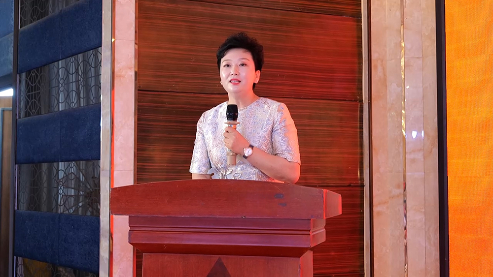 大会初始,百川城建集团营销总监于越女士上台发表致辞,对到来的分销精英表示诚挚欢迎和感谢,同时还表达了要和各分销代表勠力同心,财富共赢的必胜决心,相信在未来的携手合作中,金地首府必将以所向披靡的气势,取得辉煌的成绩,引得现场阵阵欢呼与掌声。